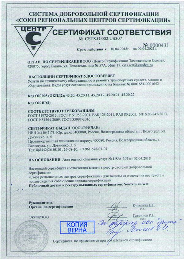 ООО «Эридан» является гарантийным сервисным центром по ремонту и обслуживанию продукции компании, ООО «Атол Драйв».
